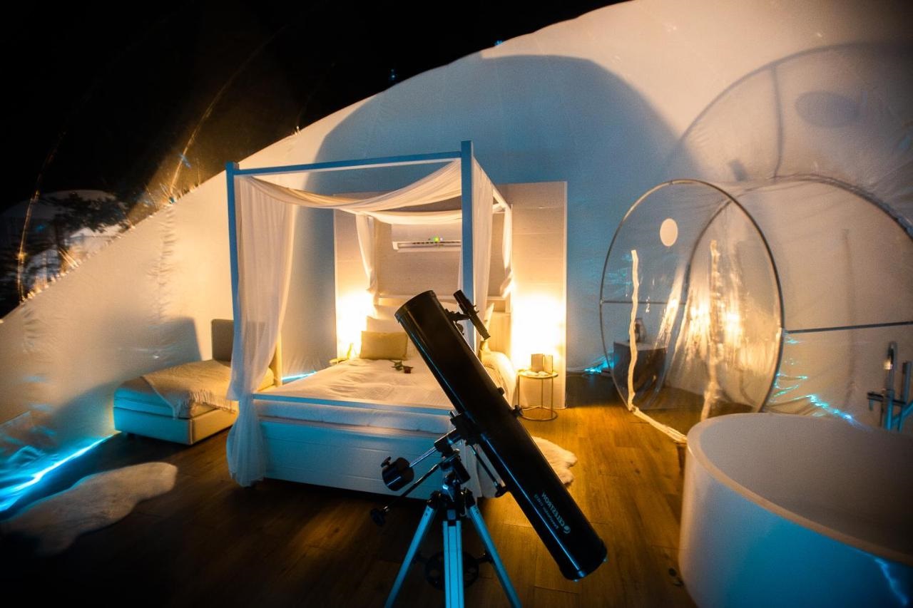 Estas burbujas están equipadas con todas las comodidades necesarias para una estancia confortable, incluyendo camas extragrandes, calefacción y, en algunos casos, incluso jacuzzi privado.